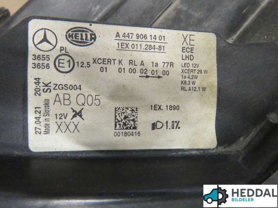 Mercedes Vito, 2014->> (W447) , Frontlykt venstre halogen